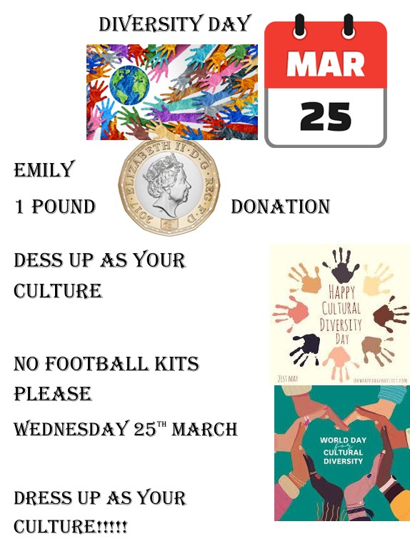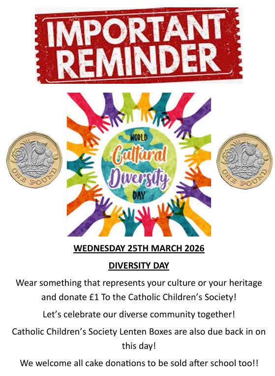 As part of our Catholic Social Teaching whole school mission for 'Community and Participation' and linked with our celebration of Diversity Day the Digital Disciples set about aising awareness and using their technology skills to create promotional posters whihc were put up around school and emailed out to parents as reminders. Below are just some examples of their efforts: